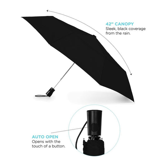 STRAYER 42" totes® 3 Section Auto Open Umbrella - BLACK